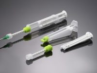 The pre-filled LSR Dual-Syringe Delivery System can be sterilized by EtO offering the convenience of a ready-to-use system and the reliability of controlled delivery for sterile, medical grade silicone elastomer not available previously. Sterile LSR meeting the requirements of ISO 10993 for permanent implantation is delivered directly to the surgical site.