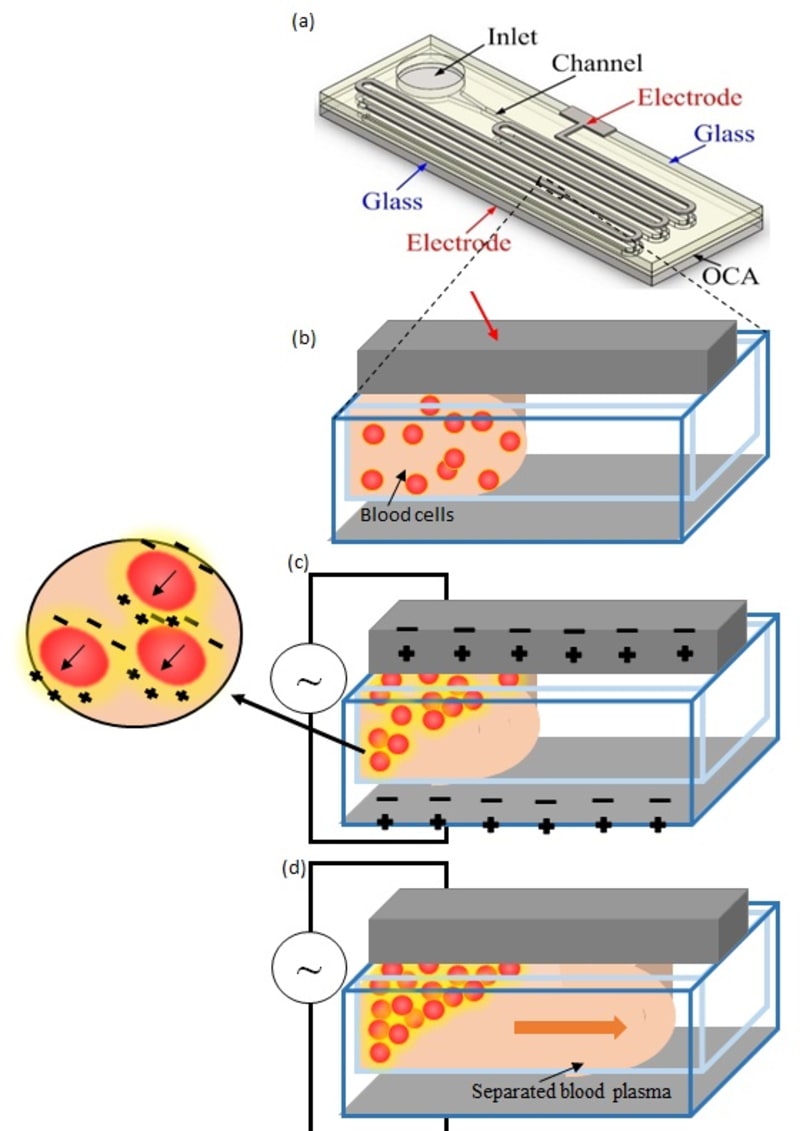 • What problem does your design idea solve? The low-voltaged (~1 V) capillary-driven contactless dielectrophoresis microfluidic chip can be used for the undiluted whole blood plasma separation together with undamaged RBCs and no hemolysis under low voltage operation.
