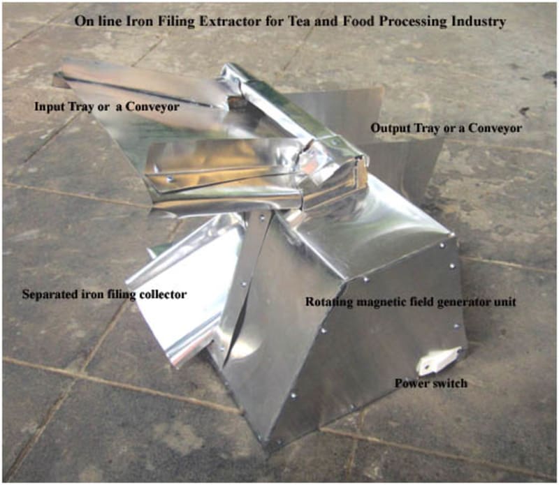 Iron filing in tea is becoming a major issue at present as the Food Safety and Standards Authority of India (FSSAI) had fixed stringent norms of maximum allowed level of iron filings in tea at 150 mg/kg. The global export market is also very much concerned about the presence of iron filing in tea. Hence it is a burning issue as well as a challenge to remove the iron filing quantitatively from tea at the source itself, i.e. in the online manufacturing process.