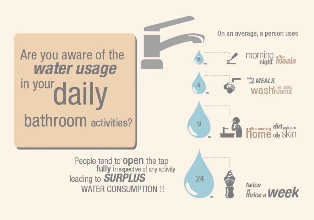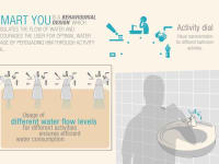 This low cost solution is designed for immediate adaptation with all kinds of bathroom fittings, without tedious installation requirements. The activity dial in ‘SMART YOU’ is a visual representation of different activities in the bathroom like brushing, face wash, hand wash and shaving. It is in the form of a sticker which is pasted across the tap as shown in the poster. Also the tap lever moves in steps having different water level corresponding to the different activities mapped onto the dial (Refer Poster).In usage, it subconsciously makes the user aware of the water usage by relating it to the nature of bathroom activity and thus, its optimal water requirement. The very awareness may persuade the user towards more responsible usage of water.