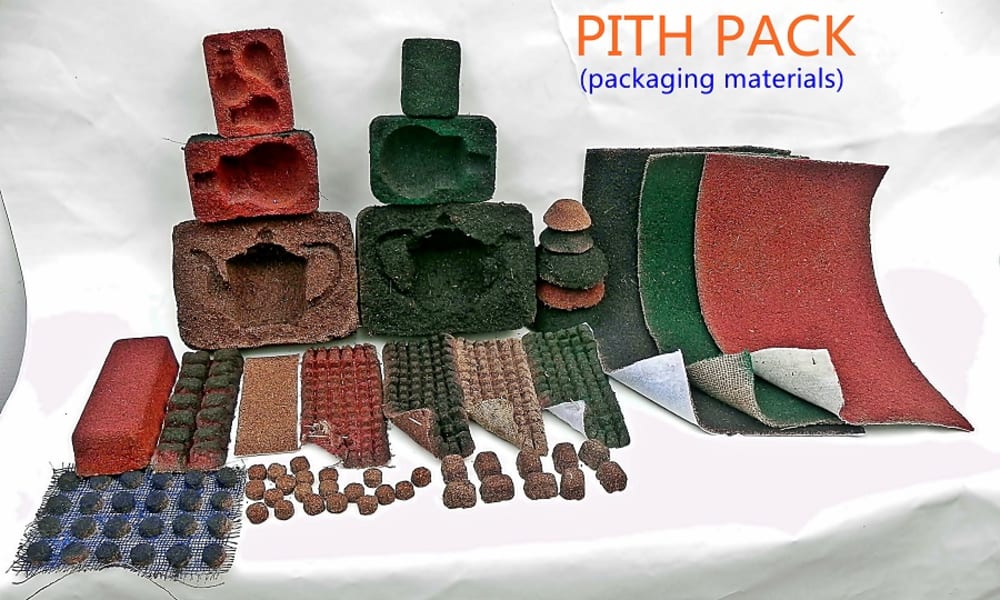 as an agro industrial by product which is going waste. So, we could use COIR PITH as packing material which is eco friendly, no CO2 emission, easily available and less weight. It alsogives Cushion effect sponge to the product packed. It helps to maintain the coir waste management by huge production.