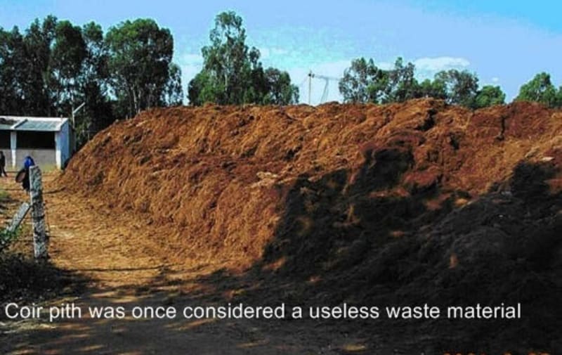 of the extraction process and was dumped outside of coir fibre mills. Generating large environmental pollution issues of its own.