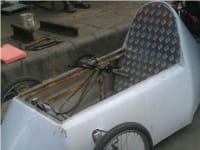 With due research and experiments, The joints were made with epoxy resin reinforced with the metallic strips bolted on the bamboo and further fitted inside metallic pipe joints with another layer of epoxy resin reinforcing the joints manifold. The shell was further manufactured by light-weight and strong Fiber reinforced plastic (FRP) . It has been designed in Pro/Engineer Wildfire 5.0 with due considerations of aerodynamics, overall profile of the car confirms to the most aerodynamic “inverted teardrop shape” or the aerofoil shape with a self defined NACA number. Drag coefficient of the design is estimated as 0.139 at 40 kmph.