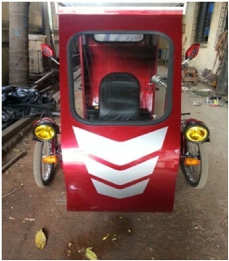 The solar powered trike has 2 front wheels and 1 rear wheel to which the motor is attached which powers the vehicle. The 500W motor can be charged either from solar energy or by connecting to an external power supply and can carry a load up to 300kg.