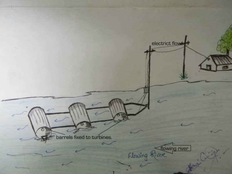 This project is an effort or idea to convert the potential mechanical energy of running water into electric energy using substances which are generally considered to be waste and are dumped that act as a pollutant.
