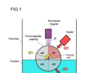 The magnet applies a magnetic field H to Portions A1 and A4 of the ferromagnetic material. The heater supplies a thermal energy Q1 to the Portion A1 of the ferromagnetic material, so the Portion A1 is changed to the paramagnetic state.