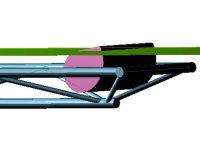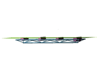 The Salter-McCloskey device attacks these issues by arraying the Ducks perpendicular to the wave crest, in an array inspired by Robert McCloskey’s famous children’s book “Make Way for Ducklings.” Several Ducks are attached to a truss-like frame long enough to span the design wave. The frame itself is relatively light and simple and the Ducks together thereby provide the reference themselves, and move relative to the frame. In waves longer than the design wave, the whole frame and Duck system is in resonance and moves opposite the wave, providing substantial energy of motion for the Ducks to absorb. In the design wave or less, the frame is relatively motionless, and the individual Ducks absorb energy from the shorter, higher frequency waves as they pass through the system. Each Duck is tuned to a differ frequency wave so it absorbs the maximum energy from the wave spectrum. The difference in resonance also reduces the tendency of the Ducks to shadow one another, even though most real seas are somewhat multidirectional in any case. The device would have a single point moor to allow it to keep station (and export power) but the mooring would be relatively simple.