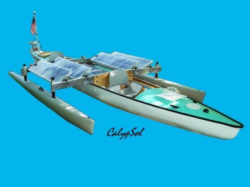 The CalypSol trimaran is a high-tech solar powered eco-friendly boat built to promote the use of renewable sources of energy and advocate a clean environment. On June 11, 2014, the CalypSol crew reached Baton Rouge, LA , thus completing 1’450 miles from Chicago, IL to successfully become the first solar powered canoe voyage down the Mississippi.