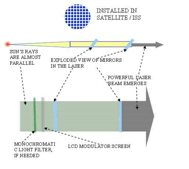 2. It is envisioned that the laser beam generator is installed on satellite/ International space station etc in outer space.