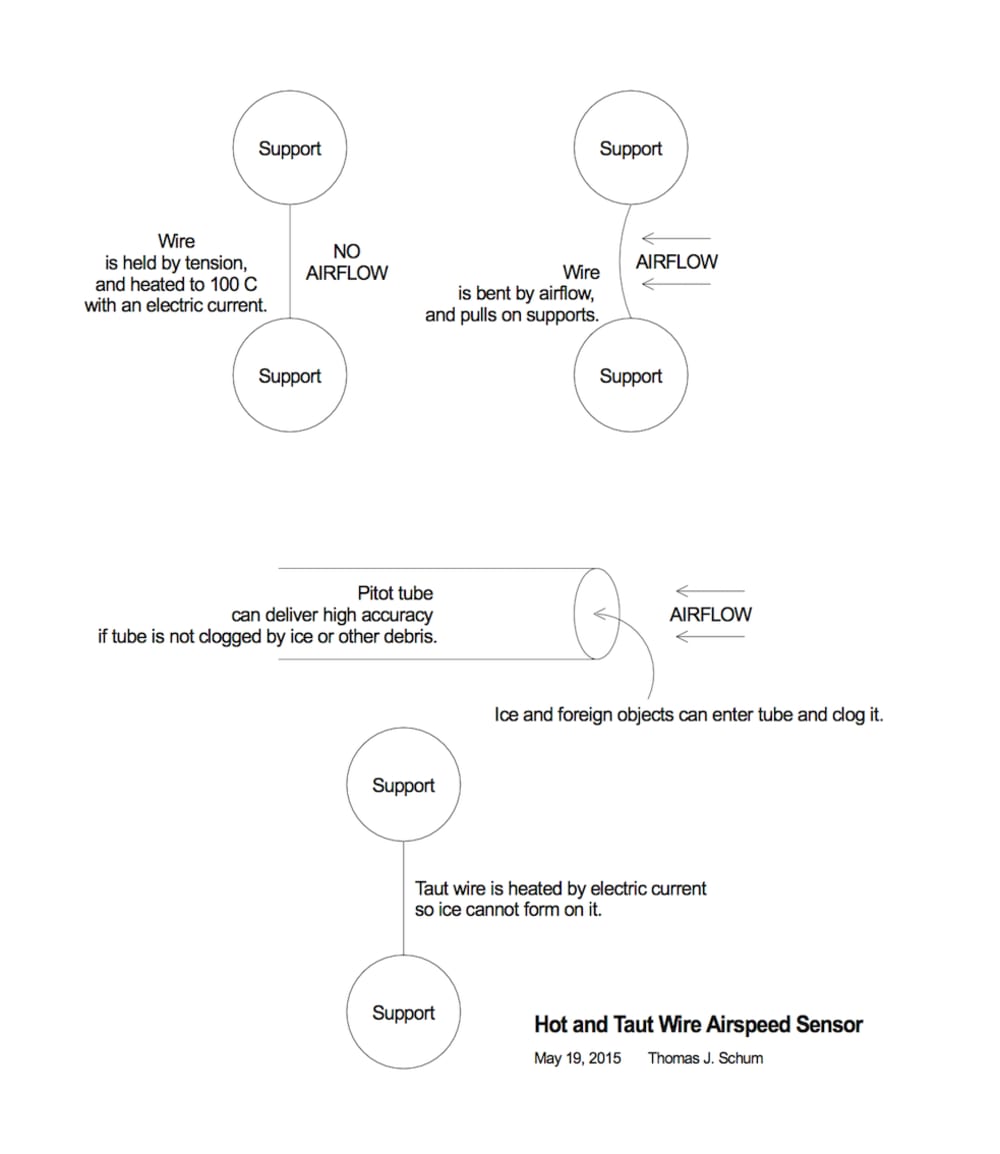A Nichrome wire is tightly pulled by two supports. This arrangement is mounted on the outside of the airplane such that airflow is at right angles to the axis of the wire.