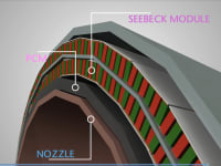 According to the Seebeck principle, electricity is produced when there is a temperature difference across the module. The Peltier principle is the opposite of the Seebeck principle, where a temperature difference is produced on electricity being passed through it. They follow the principles of Seebeck effect and Peltier effect in the system and thus help complete the system. The modules to produce electricity are placed in the exhaust nozzle where the heat required for the hot side is available. The cold side requires another set of the module to be placed on it. These modules follow the principle of Peltier effect.