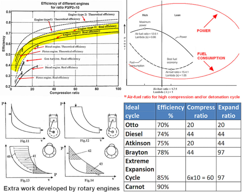DBRE is capable of utilizing ALL air-cycles employing ultra-efficient high-compression ratios >>80:1 [NOT knock-limited. We love detonation!] including in our favorite cycles - Positive-Displacement Brayton and detonation, alone or in unison, - with FULL gas expansion.