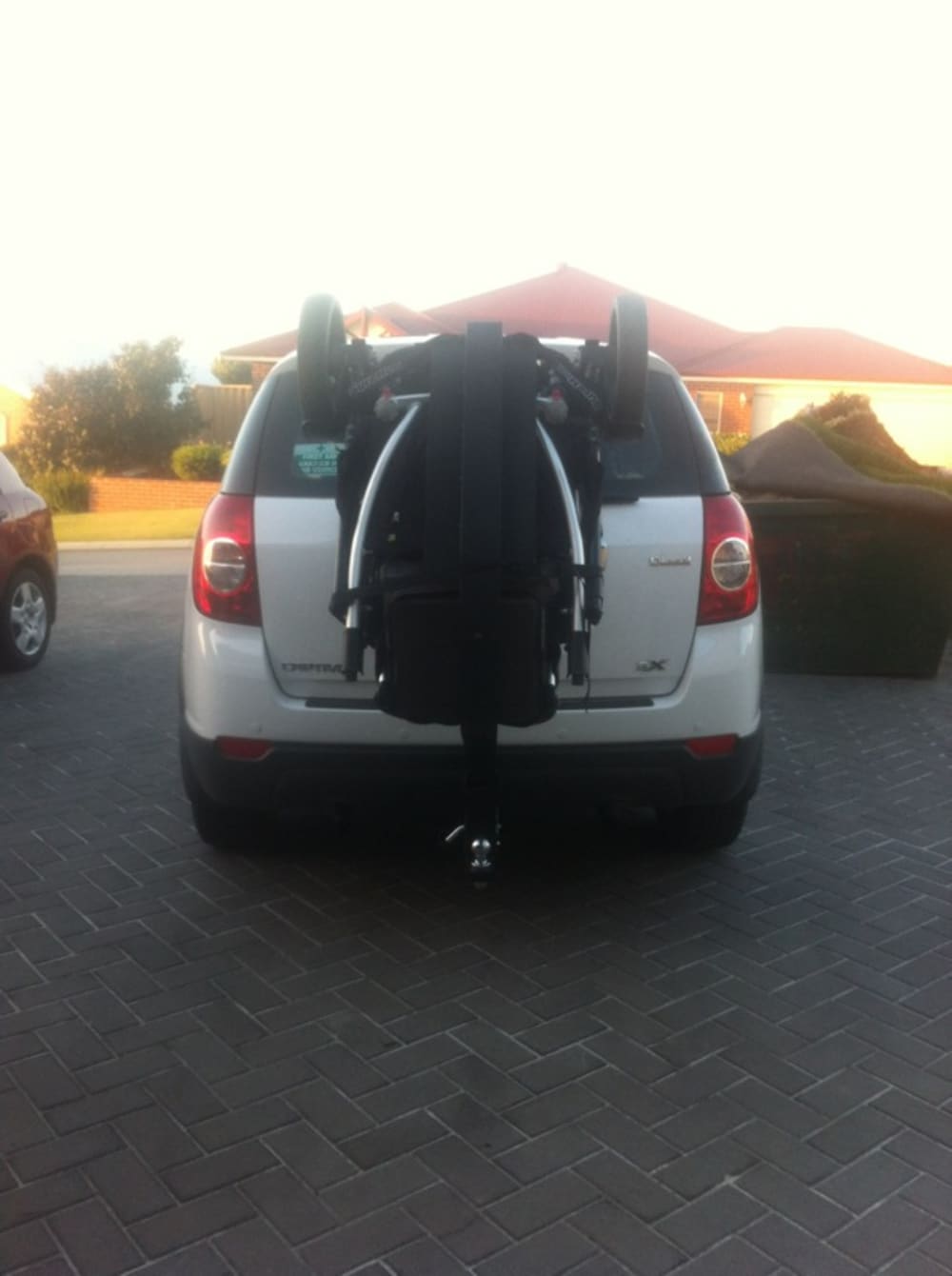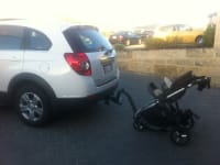 The PramAlong stores the pram on the outside rear of the vehicle attached the tow bar allowing all storage compartments in the vehicle to become free.