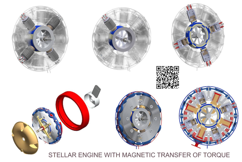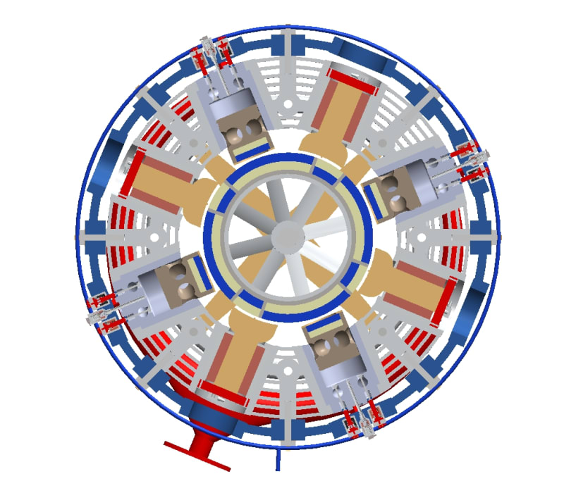 is an internal combustion engine in which the cylinders are arranged in radial lines around the crankshaft and pistons, disconnected from the latter, the transfer of the kinetic energy exclusively through the interaction of magnetic fields static generated by permanent magnets.