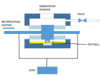 The figures below show the test rig fuel cell and a schematic cross section. Tests show that the wear scar of pure DME is very high, but can be significantly reduced with the use of appropriate additives.