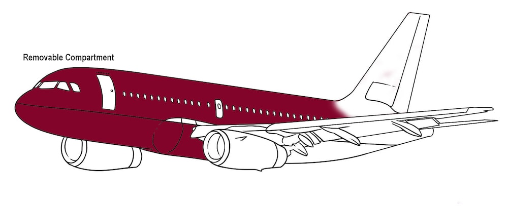 2. The structural design of the airplane has to be modified so as to facilitate plug-in/plug-off of this passenger compartment to the remaining structure of the aircraft.
