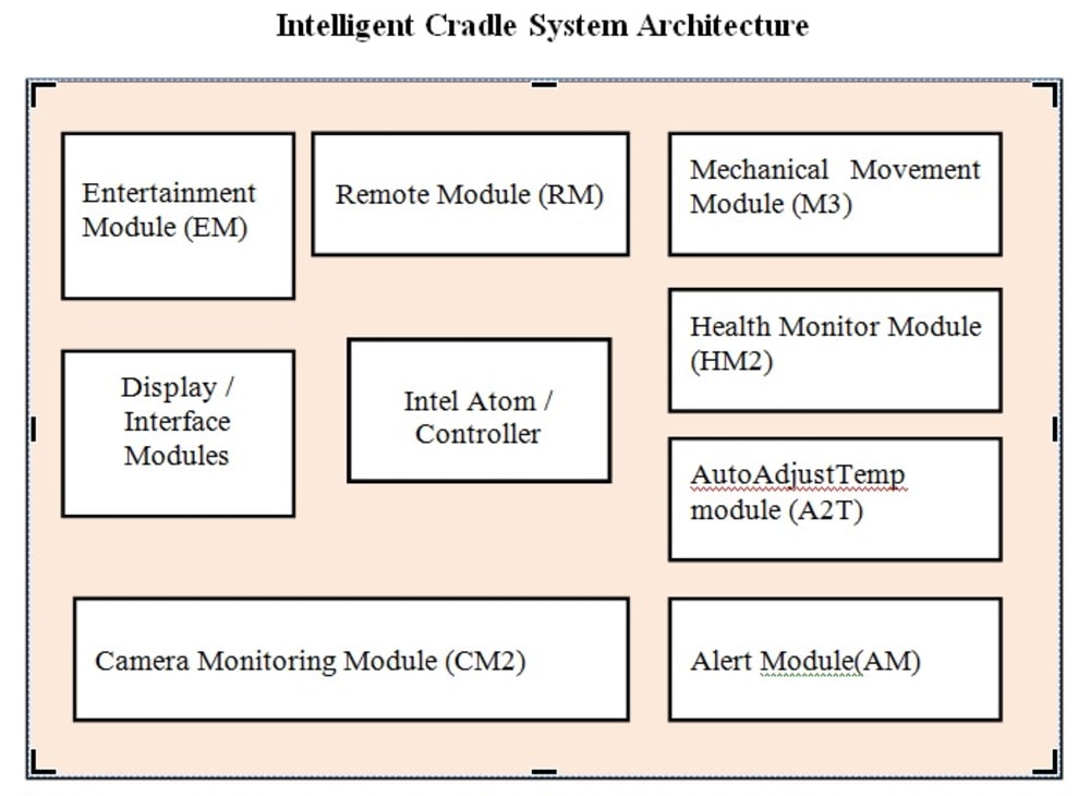 The present invention address all the above drawbacks in an efficient way. The novelty of the invention is that the parents can monitor the infant’s activities, health condition and biological need of the baby even from a remote place. A semi-automated Intelligent Cradle is designed to eliminate the difficulties in baby care by ensuring Security, Comfort, and Entertainment with ccapability to monitor from a distance while the mother is busy with other work. The proposed system “Intelligent Cradle” has the following functionalities