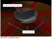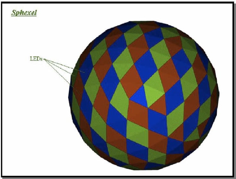 Essence of the system is an planar surface where sphexels are arranged on it or helically arranged rods (like DNA molecules) and Sphexels arranged on each rods. The planar surface or rods are rotated at 1800 rpm and Sphexels are illuminated intermittently. Since rods are rotating we will not see the rods, we only see the part of the Spexels that is being illuminated for a fraction of a second. (Just like we can see rotating fan's leaves in fluorescent light but not in daylight) If input is programmed for an image or movie, we can view movie or picture on the rods.