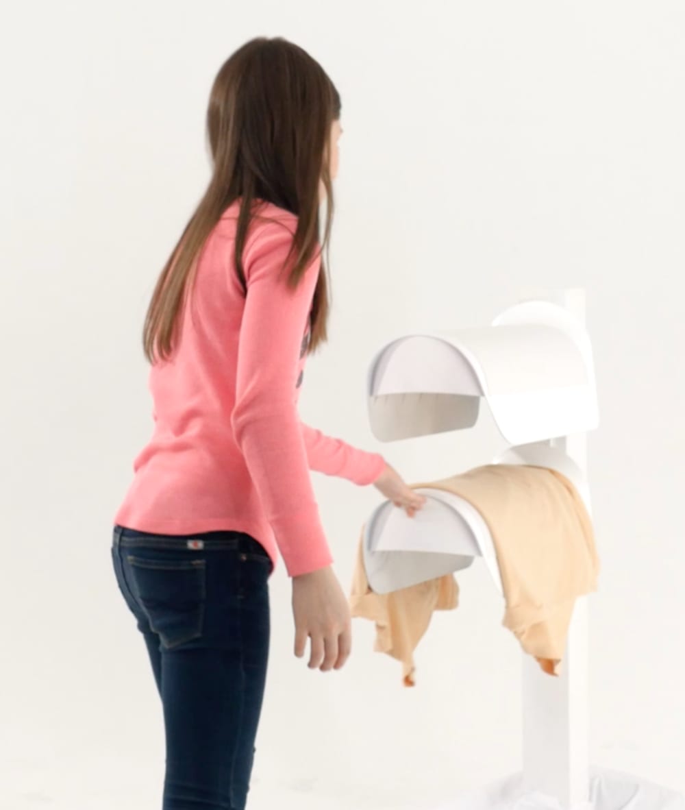 Easier for children. With the versatile placement and ease of use, the shelf can be used by very young children to starting putting away their own clothes and cleaning their rooms (and saving even more time for the parents).