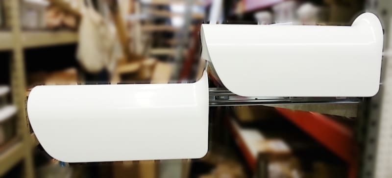 "The arc shelf" is a curved shelf that eliminates the time-consuming hassle of folding pullovers - t-shirts, sweaters and sweatshirts - especially long sleeve garments. Instead of folding a user just drapes the garment over the curved shelf. To allow multiple shelves to be used above or under each other or any obstruction (e.g., hanging clothes), the shelves slide out from the wall. The vast majority of people dislike folding, which we are forced to do because they have no alternatives. Hangers and hooks – or paying someone to fold - have obvious drawbacks and limitations, which is why so many of simply live with the clutter or toss once-worn clean items back in the hamper. And it’s an inefficient process – taking much more time than it deserves – and after all that effort, which many aren’t very good at, shirts are still wrinkled and creased when taken off the shelf and unfolded, which then for some leads to ironing the unfolded garment, more waste of time.