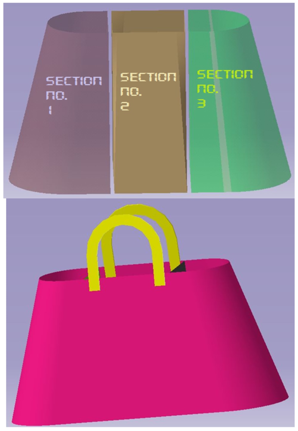 This Bag consists of three sections as shown in figure. Section No. 3 is used for keeping vegetables or items which contain little amount of water or your wet raincoat/umbrella, because the material used for this section is resin, pyridinium or melamine complexes, polyurethane, acrylic, fluorine or Teflon(Waterproofing material) to avoid contact with other section(items). 2nd section (Middle one) is for keeping brittle materials (Glass items) this made of hard materials to avoid breakage. 3rd section is to keep any material in it.