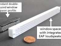 The approach is fundamentally different from passive solutions, since it cancels out actively pressure modes in the air gap, rather than adding mass or damping. It enables a sound insulation window solution, that is lighter than a comparable laminated window and outperforms conventional double glazed windows. The loudspeakers can be fully integrated into the commercial spacers between the window panes. The costs of the loudspeakers are lower than conventional ones because they are simply made of alternating thin layers of polymer and metal (1.2 mil).