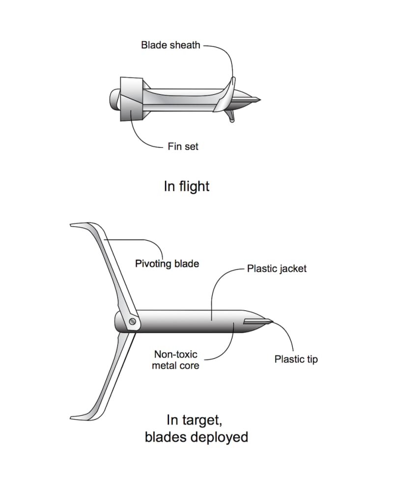 When the Broadhead-Bullet strikes its intended target the Expandable Blades fully deploy to create a wound channel of four inches, a wound channel that is over twice the size of the average broad head arrowhead.