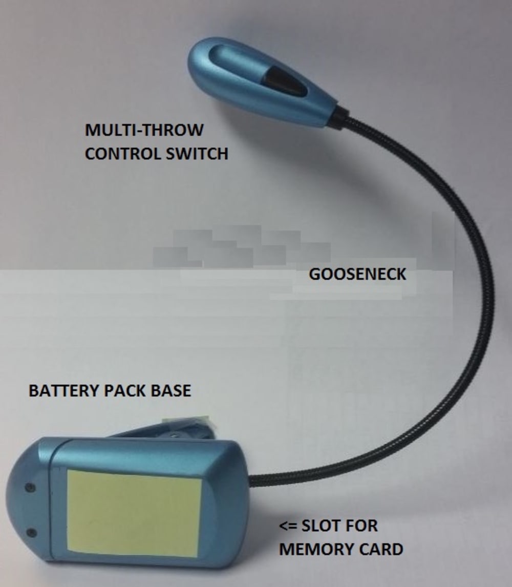 Better-than camera-phone-equivalent microphones are simple to implement (out on the end of the gooseneck), as is the support circuitry to connect to a large capacity flash card. All of the support circuitry should fit onto a single board, which would fit into the base directly above the three triple-A batteries in the battery pack.