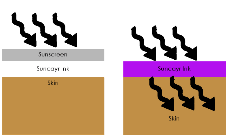Suncayr has developed a colour changing marker that will tell users when their sunscreen is no longer protecting them. The marker is like a pen, allowing the user to draw a picture anywhere on their body. Once drawn, they would then cover the ink and the rest of their body with sunscreen. When they are protected, the ink is one color, but when the sunscreen wears off and their skin is exposed to UV, the ink immediately changes to another color. This gives an easy visual warning that you need to reapply sunscreen. The Suncayr marker is applied directly to the skin, which is unique to the market. This gives you the personalized awareness they need to fully enjoy every day they spend outside, and come home sunburn free.