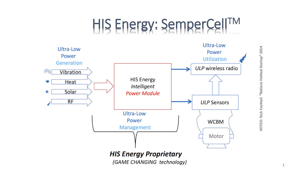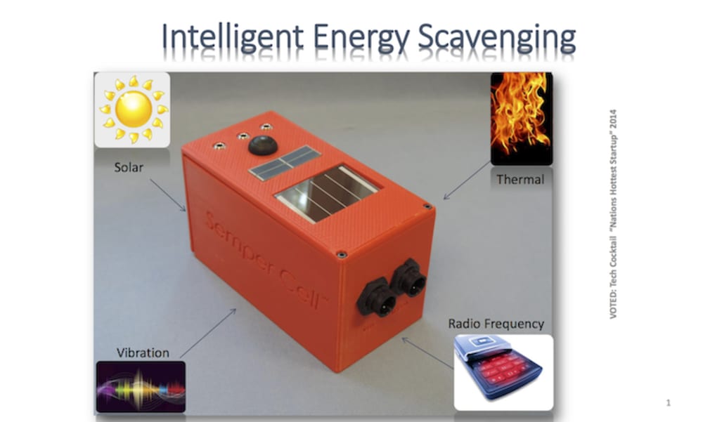 The Internet of Things (IoT) promises a world in which everything is connected by sensors to everything. The cost and logistics associated with installed wiring or using batteries to power these systems represent a significant cost. Our proprietary SemperCell technology, harvests or scavenges environmental energy and converts this energy to stored electrical power and eliminates the need for expensive wiring and battery changes. This greatly reduces customer operational costs. Our technology enables industrial clients to monitor their assets utilizing this new capability. There is a need to power these billions of sensors. Traditional methods are impractical due to the cost. Our state of the art technology solves this problem.