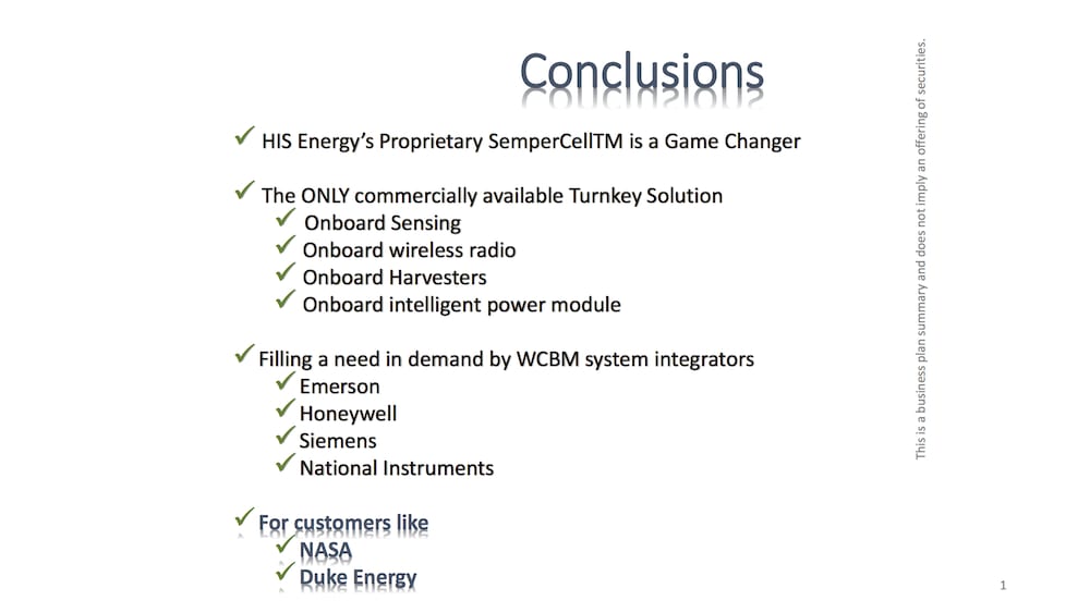 HIS Energy is the only fully integrated, plug and play intelligent energy scavenging sensor system that is available to the wireless condition monitoring market. There are energy scavenging companies. There are wireless companies. There are companies that produce sensor nodes. There are no competitors that deliver an integrated solution that monitors customer’s assets without wires or batteries.