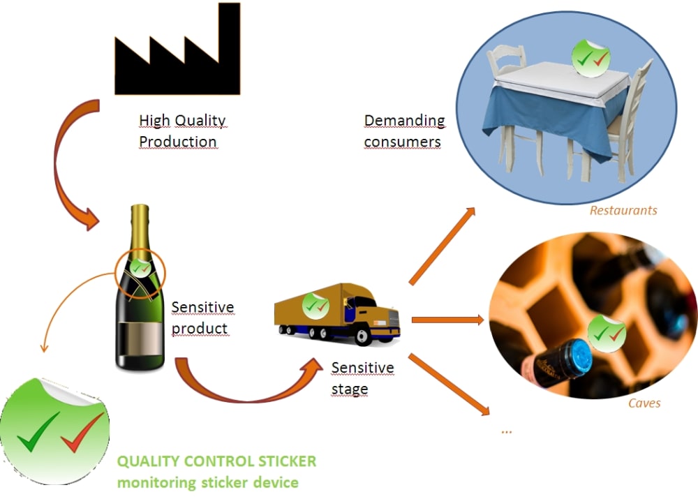 The solution proposed is a monitoring sticker device to be incorporated to every product. This device is designed to check real time the most important preservation conditions. A direct communication Producer-Client is achieved and in case of not meeting the required conditions specific actions can be taken.