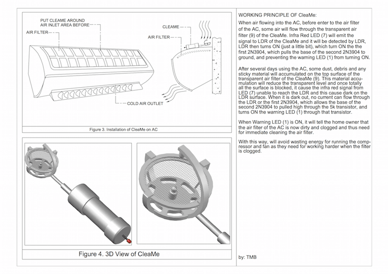 The other problem is, most of the home owners are usually careless or might forget to clean the air filter of the AC. CleaMe is coming to solve the problem. CleaMe will give a warning to the home owners to tell them that the air filter is now need to be cleaned or replace with the new one. With this, home owners will save more cost for energy consumption of their air conditioner system.