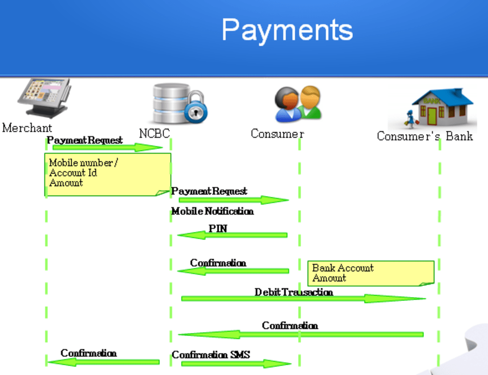 - nCbC will do credit transaction on consumer's bank account & give transaction confirmation notification to both Consumer & Merchant.