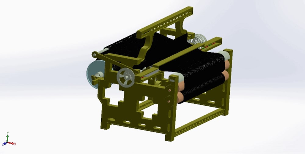 A powerloom was designed by Edmund Cartwright in 1785 .The control of powerloom is controlled by a line shaft. The purpose of powerloom is to weave the clothes which is used for different purposes. The main components of loom are warp beam, take up roll, shuttle, reed, heddles, cam, line shaft, pulley, dead weight.