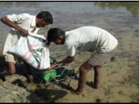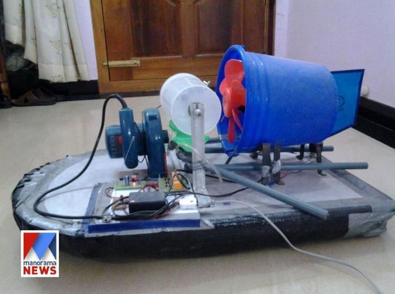 Agriculture in India is facing a decline, reason being, inefficient farming methods and labor scarcity. Nirvapana means sowing in Sanskrit. In India, Broadcasting of pre-germinated seeds is the common practice of sowing where farmers walk around the field and toss the paddy seeds on to the field. One of the major drawbacks of this technique is that since crop and weeds germinate together, weeds compete with the paddy for the available water, nutrients, space and light. In addition, to maintain the plant population farmers go for higher seeding rates and end up using twice the amount. A drum seeder is a simple manual sowing device consisting of a cylindrical drum attached to a central shaft having wheels attached to both sides of the shaft.Thus we came up with our design integrating a drum seeder into an unmanned hovercraft.The benefit of this hovercraft idea is that now, the work done by the farmer is tremendously reduced; he no longer has to go into muddy field along with lots of laborers; instead all he has to do is control the craft through the remote and make sure that the device is moving in straight lines. The device was made to move a distance of 5 meters on a level floor to simulate the seeding process in a line.Any change in direction was corrected by the rudder . When the seed drum was rotated by the synchronous motor, which gets activated by the forward motion of the hovercraft, seeds were discharged on to ground with approximately required spacing. Uniform motion was achieved, and sowing was able to be done in straight line of 10 meters in less than 2 minutes, with right spacing in between. Conducted a survey that covered the target area. Accordingly, process of traditional farming followed here includes two steps. The process of broadcasting takes 24 manhours of work to cover one hectare of the field. Second step; transplantation is done after 18- 20 days, takes 320 manhours/hectare. So the complete process takes 344 manhours/hectare. Labor rate of the area is $1.25 / hour. Thus we have $520 as labor cost alone per hectare. Incredibly the final prototype is estimated to take 40 manhours/hectare to complete same task more effectively costing us 60$. Cost incurred in producing our prototype was $125 which is a onetime investment. People of the area has 24x7 access to stable power supply of 240 V @ 0.08$/Unit. The power rating of our machine was found to be 800W. On operating the machine for 40 hours, the energy consumed is 32 units producing a 5$ bill. In total, operating cost will be $65 per hectare. We are concentrating on Kerala as our primary market where soil in the paddy fields is soft and weightbearing capacity is low. So if our product works well here; it works everywhere.Our funding has been guaranteed by NABARD (National Board of Agricultural Research and Development.) and thus manufacturing will be done for us by RAIDCO, Kerala (Regional Agro Industrial Development Corporation).