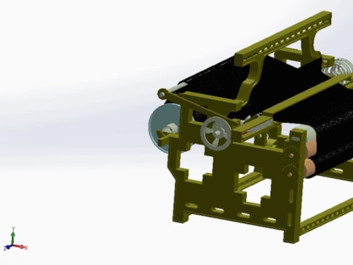 A powerloom was designed by Edmund Cartwright in 1785 .The control of powerloom is controlled by a line shaft. The purpose of powerloom is to weave the clothes which is used for different purposes. The main components of loom are warp beam, take up roll, shuttle, reed, heddles, cam, line shaft, pulley, dead weight.