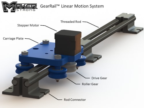 GearRail™ is a low-cost, easy-to-assemble linear motion system that is constructed from simple 3D printed parts and common off-the-shelf hardware components. This novel system is being released as open source hardware under the CERN Open Source Hardware License (Version 1.2).