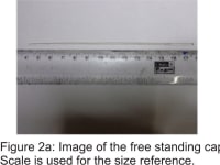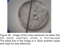 This process of releasing does not yield any wastage of materials. The tubing and the fiber can be reused for numerous cycles of fabrication. Figure 2a and 2b shows the images of the free standing capillary and its cross sectional cut.