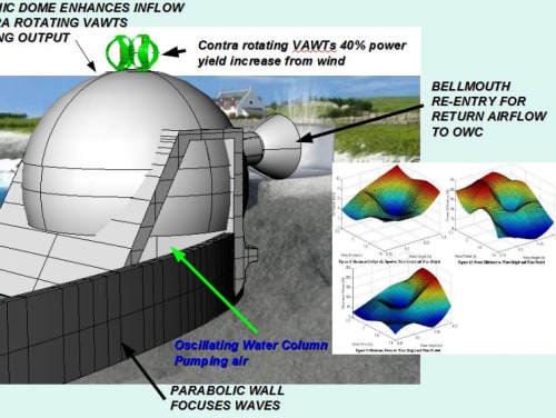 The success of an Oscillating Water Column (OWC) installation off the west coast of Scotland suggested a compounded system as in the following outline.