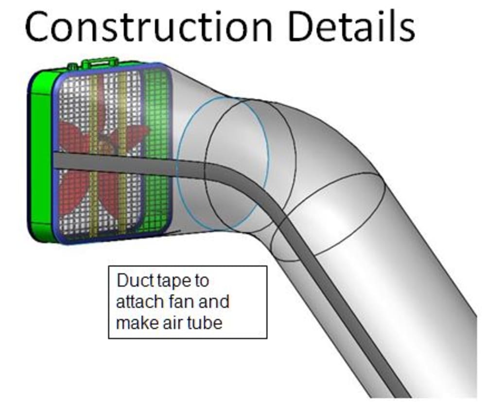 The system is a made from a box fan and a lightweight polyethylene plastic sheet. The whole system is easy to make and can cost under $20 USD. The system is not patented, free to the public, and has been in use for several years and in several houses.