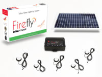 Then we have the Firefly LED lights. There are five of the most engineered LED lights available. Regardless of battery charge, the Firefly LED lights draw a constant 1.2 watts of power with a constant brightness of 120 lumens. Firefly LED lights are manufactured with LEDs capable of delivering light for 10 years! Adding to the robustness, the LED assembly and driver board are sealed, so the lights are submersible. And with 5 meters of cord and a separate switch for each Firefly LED light, there can be light in each room of a rural dwelling.