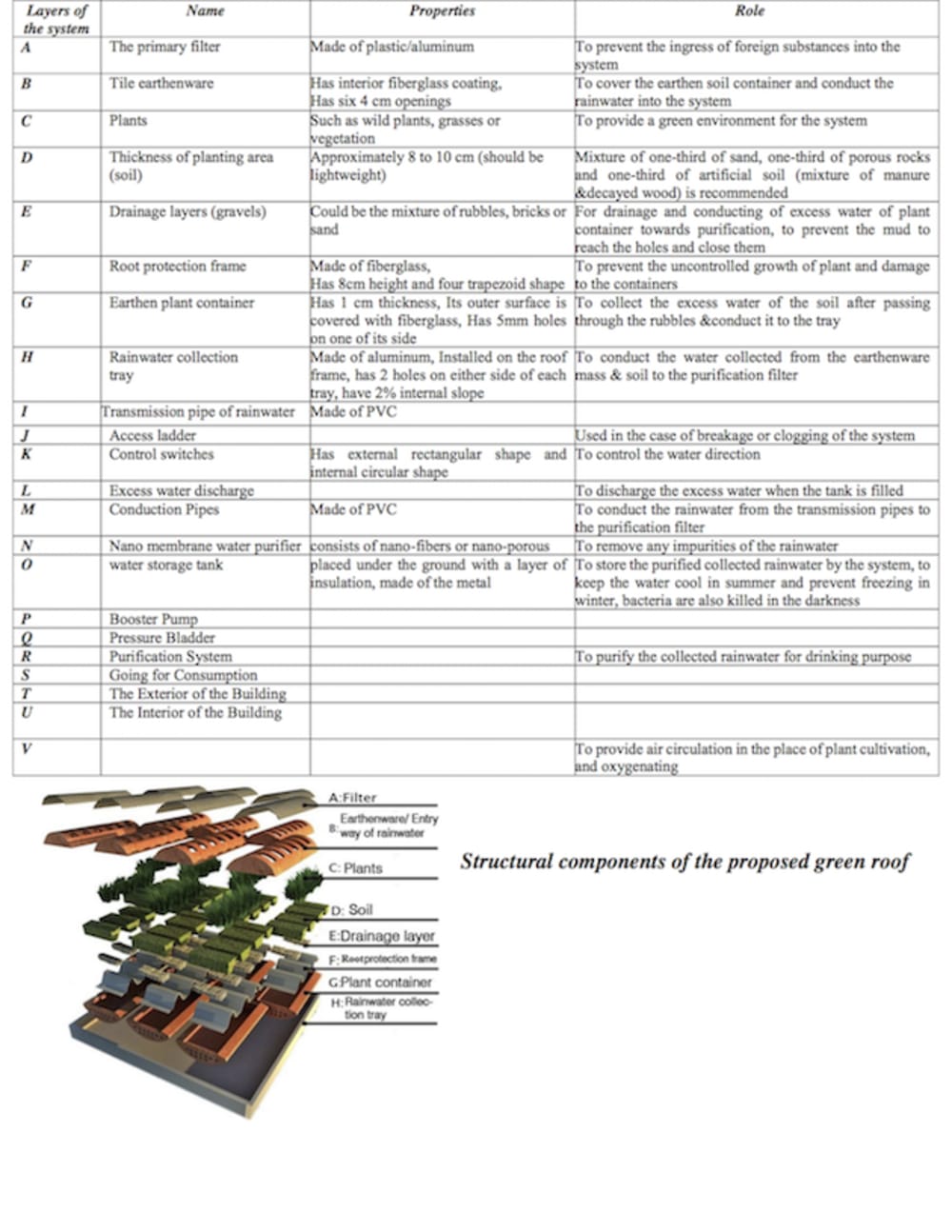The purpose of this system is to improve the environmental sustainability by providing a green cover to reduce carbon dioxide emissions, and collection and purification of rainwater for optimal usage of rainwater by having access to the safe water in all regions. Due to the drinking water problem and looking of the international community to sustainable products more than before, this product is applicable in all rainy regions of the world in different types of buildings.