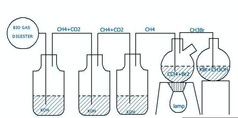 The project presents conversion of biogas to liquid fuel Methanol by Nucleophilic substitution reaction and its application in IC engine by changing valve timing.