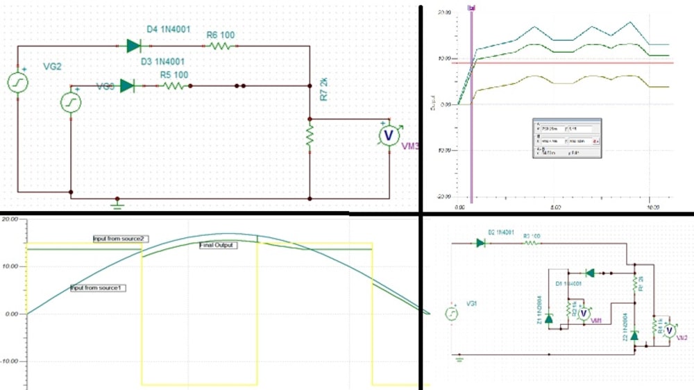 TINA is an easy to use, powerful, circuit simulation tool based on SPICE engine that provides all DC, transient and frequency domain analysis of analog circuits. The circuit used to combine solar and wind powers has been designed and tested using TINA under worst possible conditions and verified to be working with satisfactory results.