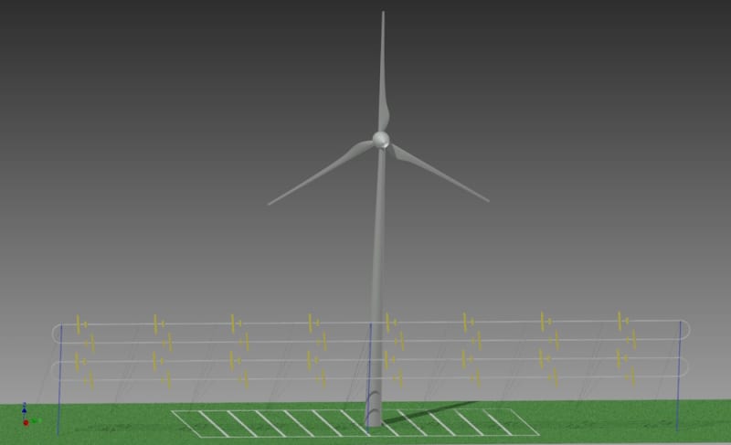 The AirLoom dramatically reduces the capital cost of wind turbines by an astounding 15X over the dominant wind technology, the horizontal axis wind turbine (HAWT). It captures large swept areas of wind at low cost by placing multiple airfoils on a vertical oval track, with all forces distributed and supported by tension cables. The AirLoom’s patented design represents a 23X reduction in the HAWT’s mass, resulting in a dramatic reduction in manufacturing, transportation, maintenance and land costs.