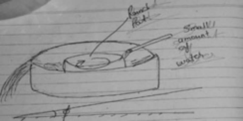 If we have two bowls, one is larger named as ‘Paraat (Hindi word)’ is full with liquid (water) and another one bowl (is made with aluminium) has smaller diameter and height. Smaller bowl partially filled and floating on larger bowl’s water surface. Water has been supplied from small diameter pipe (filter pipe, diameter 0.75 mm). Pipe has exit hanging over the smaller bowl’s periphery edges with discharging water.