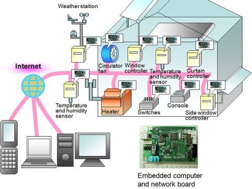 Monitoring and control of greenhouse environment play an important role in greenhouse production and management. Greenhouse monitoring and controlling project is used to measure the various parameters like Temperature, Humidity and Light and to display them on a LCD. Temperature, Humidity and light are sensed by respective sensors. Sensor output is amplified and given to ADC.