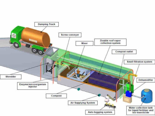 This odor free technology, the controlled aerobic biological distillation process where microorganisms convert raw organic materials (kitchen waste, yard waste, animal manure and human feces) into a high yield, high value, organic pesticide, organic animal feed, or organic fertilizer. The technology will eliminate costs associated with landfilling, reduce methane greenhouse gas production,