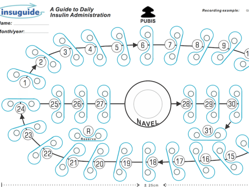 INSUGUIDE is a flexible blade which both locates and records daily dosages of insulin and measures glycemic indices.